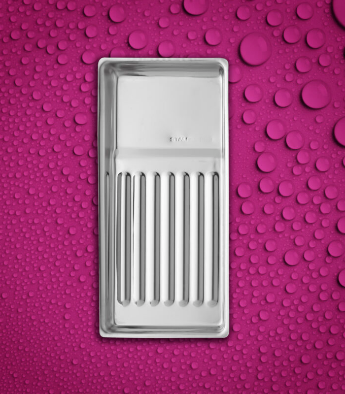 La organización eficiente es el primer paso hacia un servicio de excelencia. Esta bandeja de acero inoxidable ha sido diseñada con las dimensiones óptimas para albergar sets completos de alicates, empujadores, tijeras y fresas. Su profundidad de 19 mm es ideal para contener soluciones desinfectantes durante el pre-lavado sin riesgo de desbordamientos. Al ser un material no poroso y de alta densidad, no absorbe olores ni se mancha con pigmentos o químicos utilizados en el salón. Es una pieza básica para cumplir con las normativas de sanidad más estrictas, elevando la percepción de profesionalidad de tu gabinete o clínica.