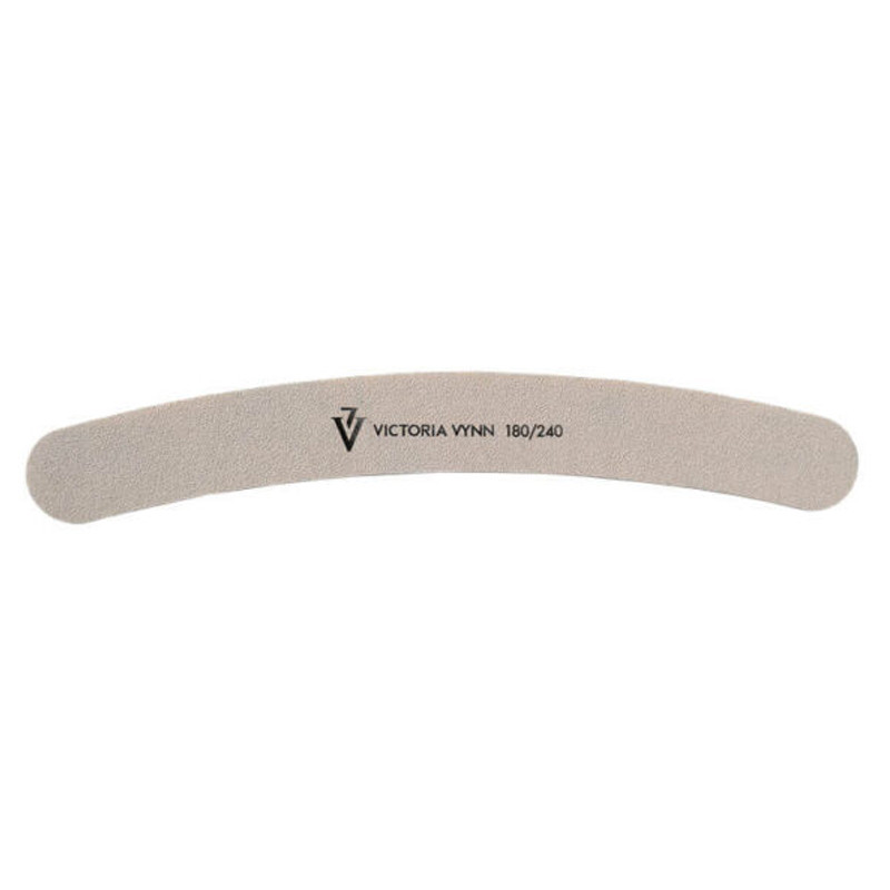 Lima tipo banana gramaje de 180/240 de Victoria Vynn para diferentes estilos de uñas, tratamientos y técnicas de diseño y limado. Recubierta de estearato, lo que evita el desgaste prematuro en la lima de uñas.